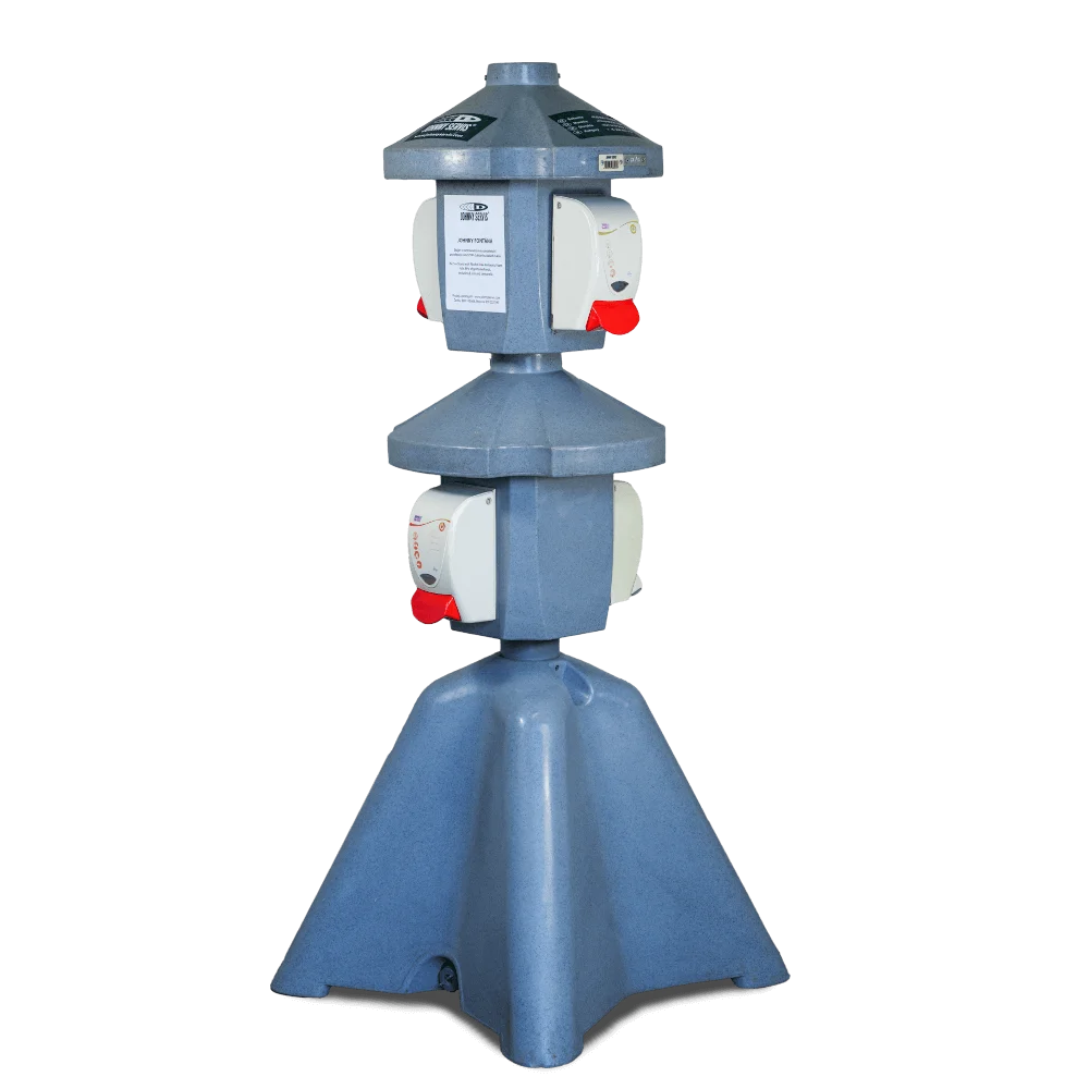 Roztok v dávkovačích na tomto mobilním stojanu usmrtí až 99 % bakterií na vašich rukou. Jeho využití je ideální na všech veřejných místech, jako jsou nádražní haly, obchodní centra, ve školách, na hřištích, festivalech, při pořádání farmářských trhů, nebo i na stavbách. Možnost krátkodobého nebo dlouhodobého pronájmu s pravidelným doplňováním náplní.